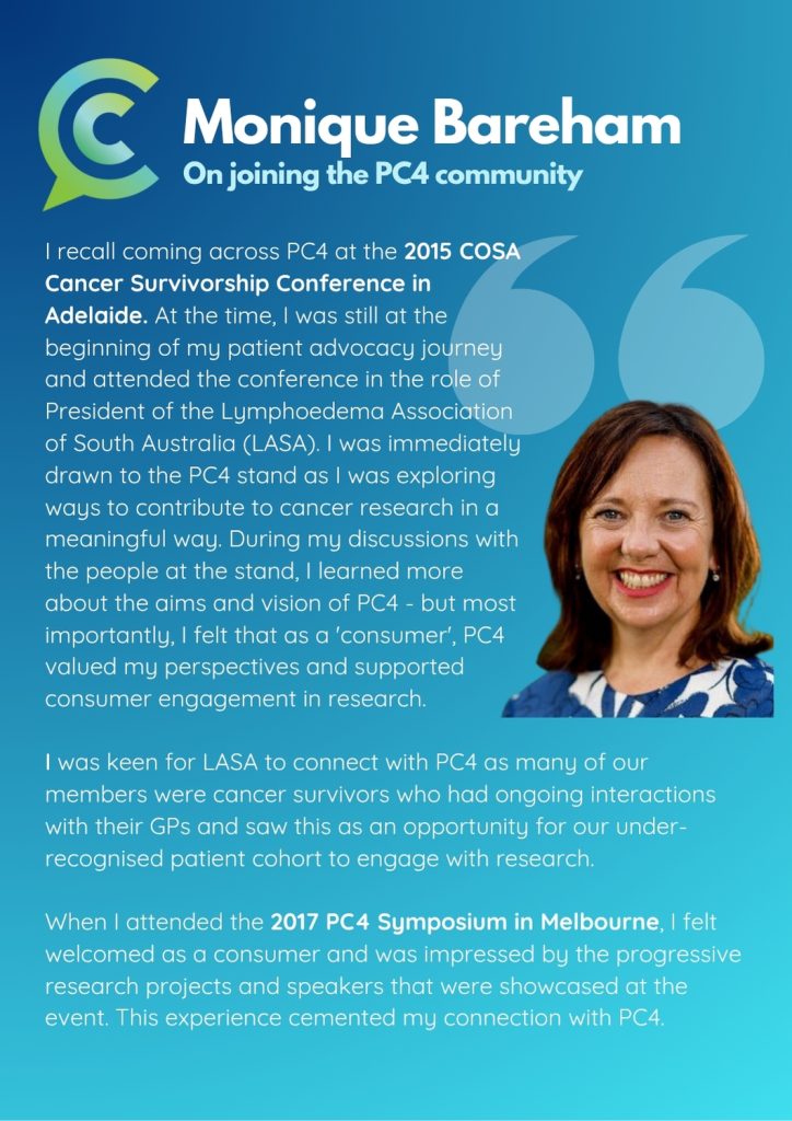 Are you a community member interested in contributing to cancer research?  We have a pool of PC4 Community Members made up of people who are interested in or affected by cancer.  You’ll hear from us several times a year about opportunities to be involved in cancer in primary care research projects, as well as invitations to free talks and events.